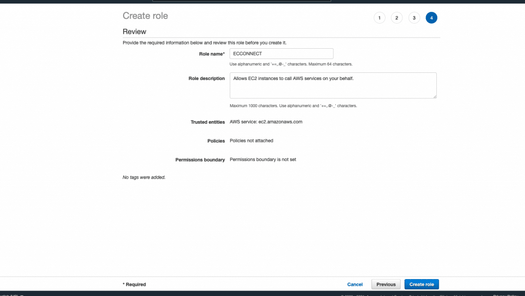 6. Next you have to review the role details choose and give a name for the new IAM role also.