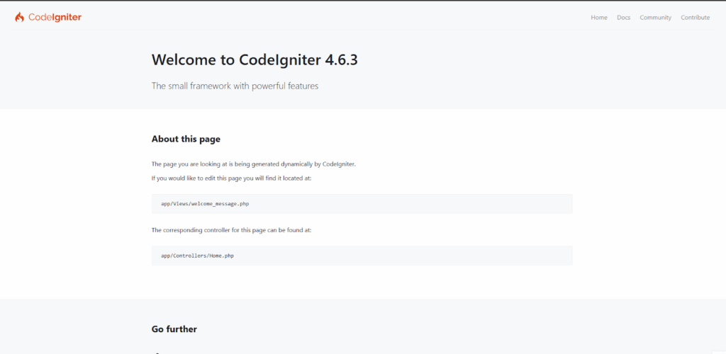 Open your browser and call your domain. You should see the default CodeIgniter welcome page.