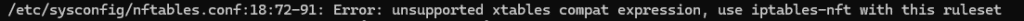 Error: unsupported xtables compat expression, use iptables-nft with this ruleset